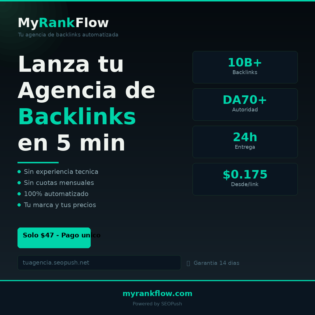 El programa de afiliados esta en Hotmart. Registrate gratis, busca MyRankFlow en el mercado de afiliados y empieza a promocionar de inmediato.